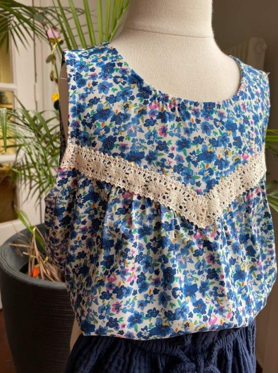 Haut sans manche fleurs bleues - 4 ans / 10 ans / 14 ans